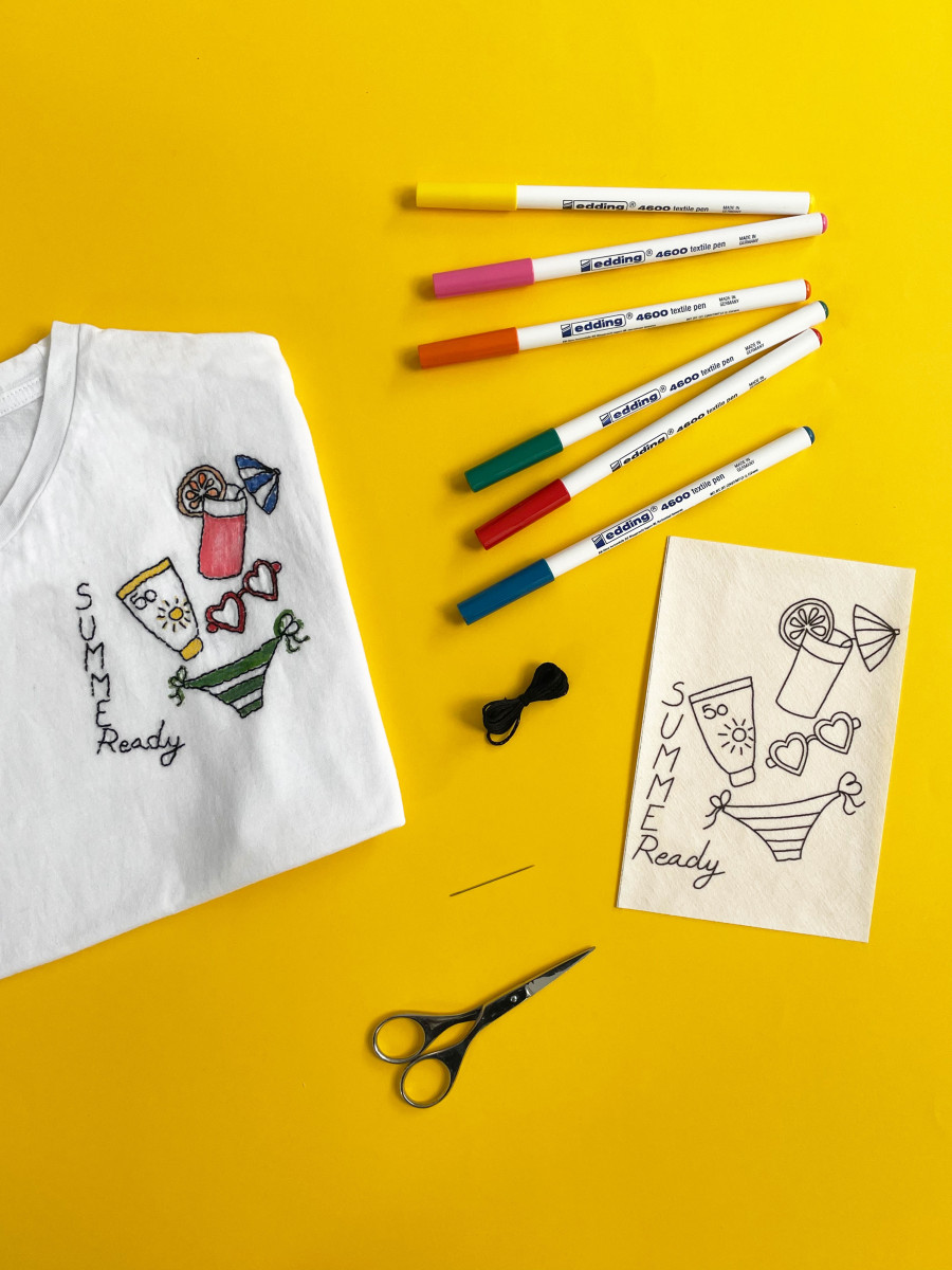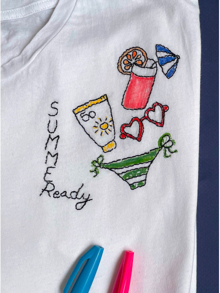 Il vous suffit de broder les contours, puis de colorier le reste aux feutres pour textiles (non fournis dans le kit)!